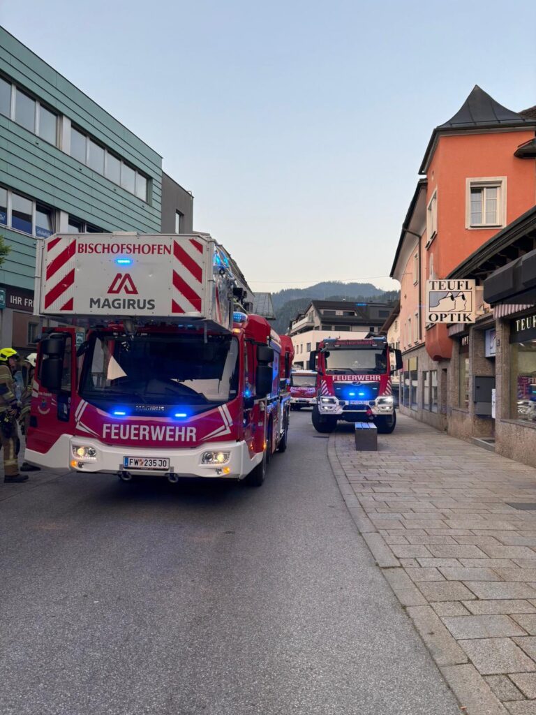 Um 06.08 Uhr wurde die Feuerwehr Bischofshofen zu einem Brandalarm, ausgelöst von einer automatischen Brandmeldeanlage, gerufen. Bei der Erkundung im Gebäude stellte sich heraus, dass vermutlich durch Dampf oder Rauch eines Backofens der Alarm ausgelöst wurde. Nach kurzer Zeit konnte der gesamte erste Löschzug bestehend aus KDO, RLF-1, DLK, RLF-2 und 19 Einsatzkräften wieder einrücken.