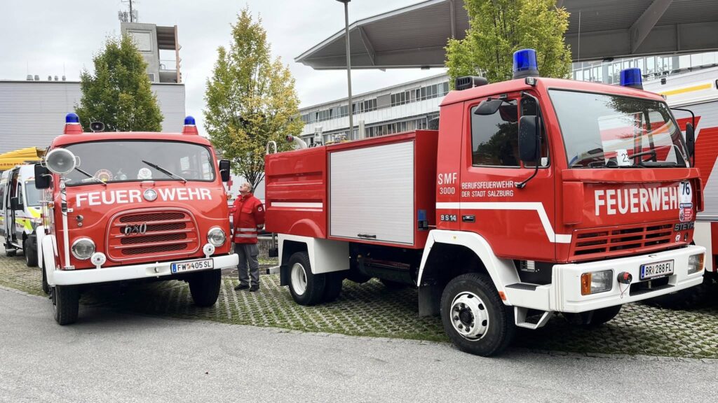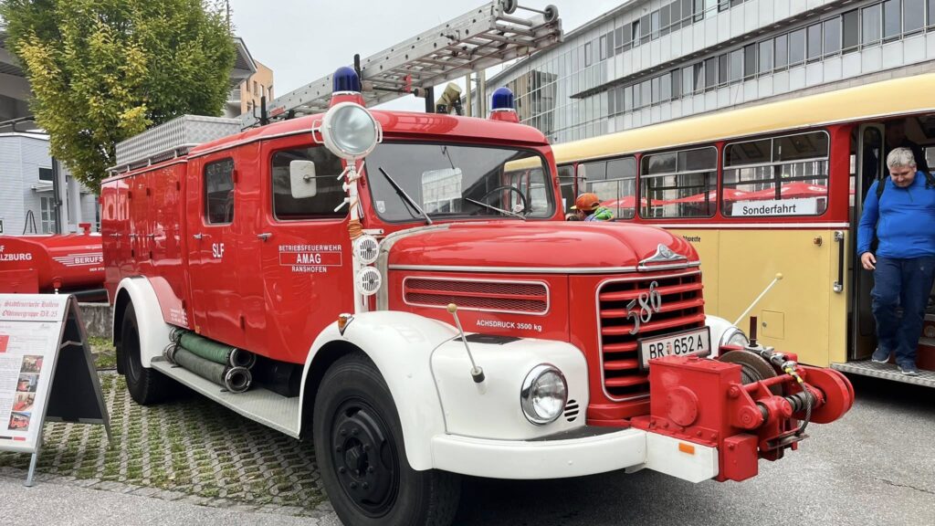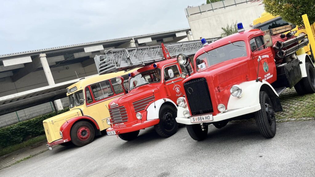 Die Berufsfeuerwehr Salzburg feierte heute den Tag der offenen Tür in der Hauptfeuerwache Maxglan. Wir beteiligten uns beim Oldtimerkorso durch die Stadt mit unserem LF 8 und dem Unimog.