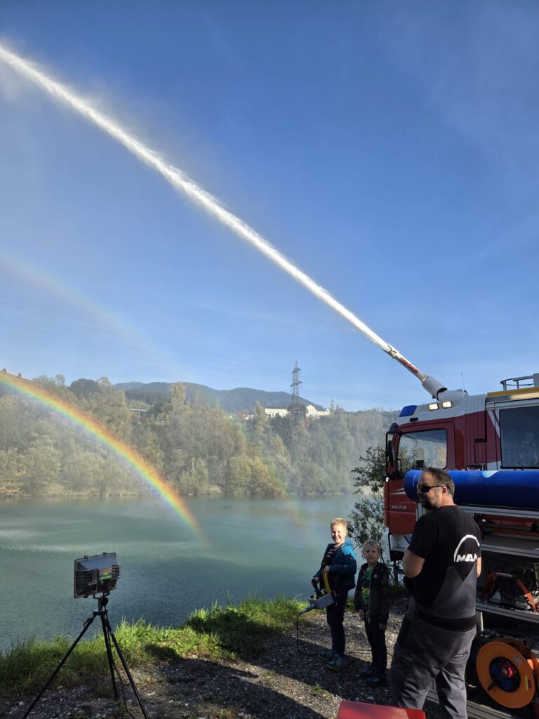 Auch einige junge Zaungäste konnten heute schon mal die Bedienung unseres Wasserwerfers oder besser gesagt an unserer Regenbogenmaschine üben und waren erstaunt darüber.